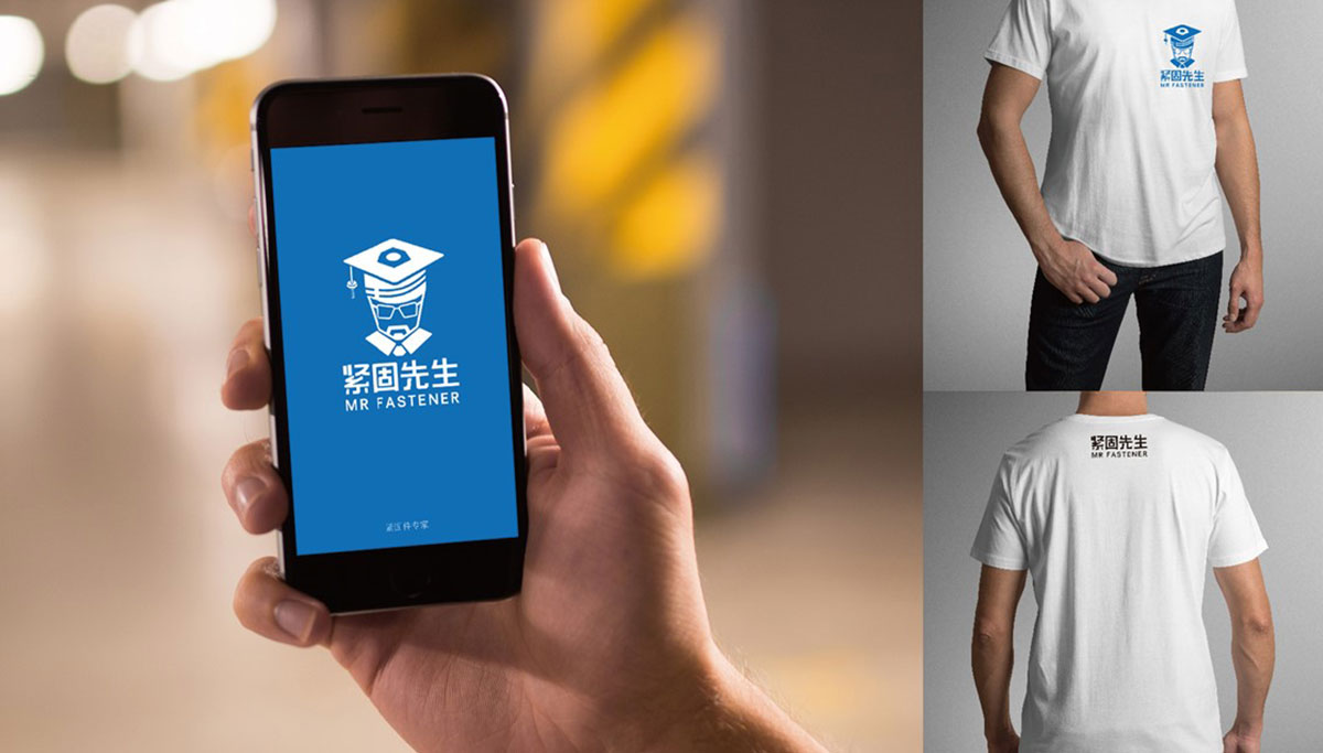 緊固先生從品牌名上比較親切,賦予產品人性化,因此設計師采用了人性化的設計理念,LOGO設計出一顆卡通螺絲博士的形象。博士代表著專業,全面,正如品牌緊固先生的產品十分全面,在行業內很專業同時卡通的形象,更加親切,讓冰冷的緊固產品有了活力,拉近消費者與產品的距離。同時設計師很巧妙的將博士的帽子融入產品螺絲的形狀,看著順其自然,更加強調了產品的屬性。