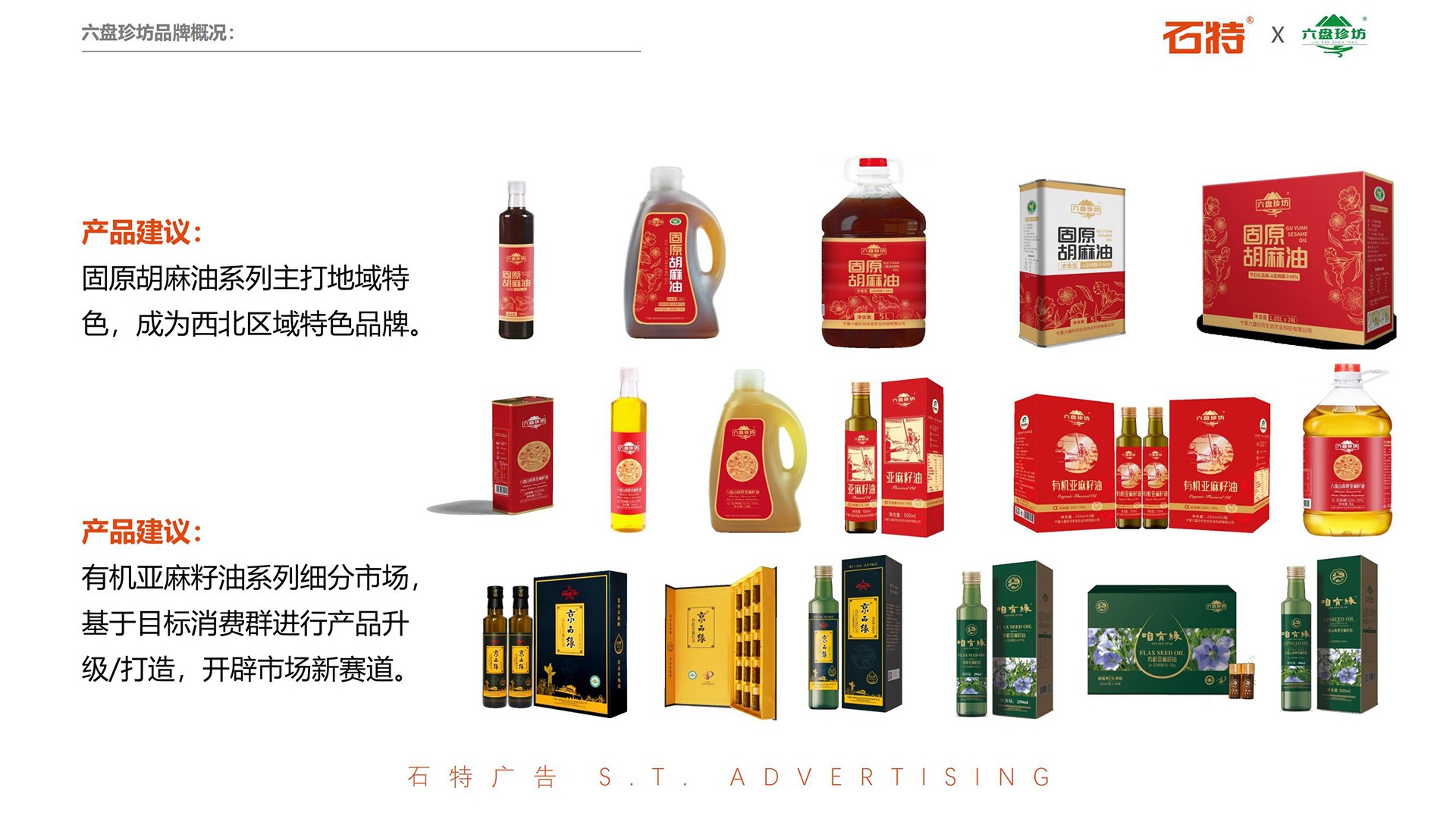 六盤珍坊找到石特廣告,希望我們能幫助他它進行品牌升級,就這樣,石特廣告攜手六盤珍坊開啟了品牌升級之路!十年砥礪奮進讓六盤珍坊在亞麻籽油行業占領了一席之地,2022年,六盤珍坊將進入一個新的發展階段,想要實現品牌升級,在大健康領域規劃新的產業布局,占領重要高地。