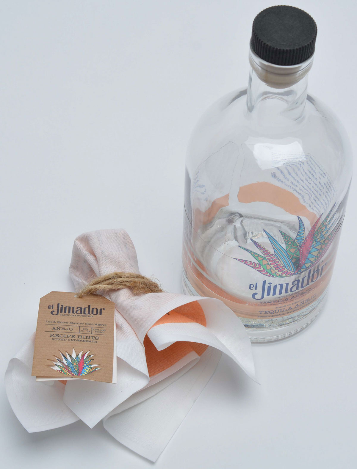 為了讓這個品牌能夠快速的占領市場,我們在酒的包裝設計的過程中使用了復雜且具體的設計流程。 當覆蓋瓶子蓋子的布料打開時,露出了龍舌蘭酒配方。 貼在瓶子上的標簽設計暗示了配方中需要的其他成分。 這創造了一個驚喜元素,將被用作龍舌蘭酒的發射活動的一部分,設計一種直接吸引目標受眾的營銷畫面,也就是新的酒包裝設計