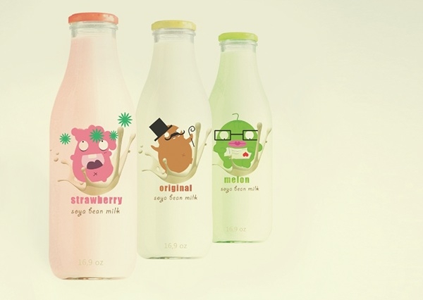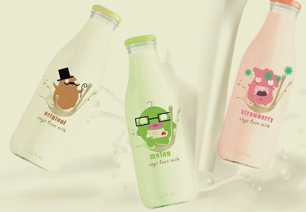 豆奶,小時候特別喜歡喝的一個產品,還記得是幾毛錢一瓶,瓶子是玻璃的,喝完了把豆奶的瓶子還了還能夠兌換,不過現在已經很難看到了。 隨著社會的進步,新的豆奶包裝層出不窮,這次給大家欣賞的也是一塊趣味性的豆奶包裝設計。