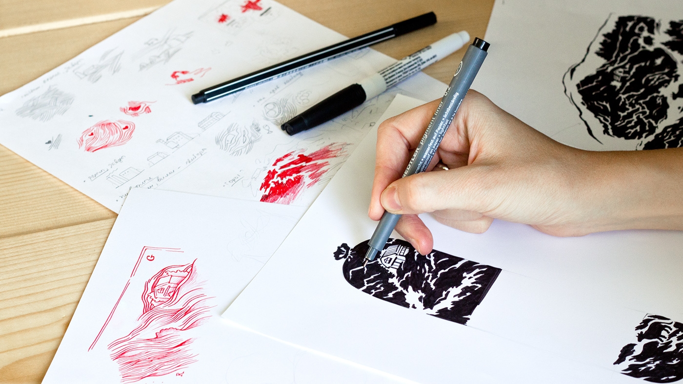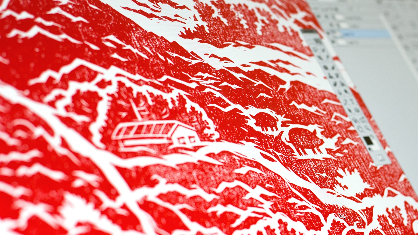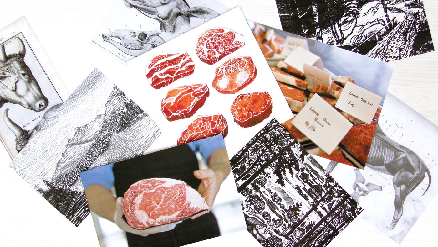 一直以來,我們都想用模擬技術來進行背景說明,因為它與實際的肉的香腸的定位概念產生了共鳴。通過所有可能的選擇,我們最終選擇了linocut技術。