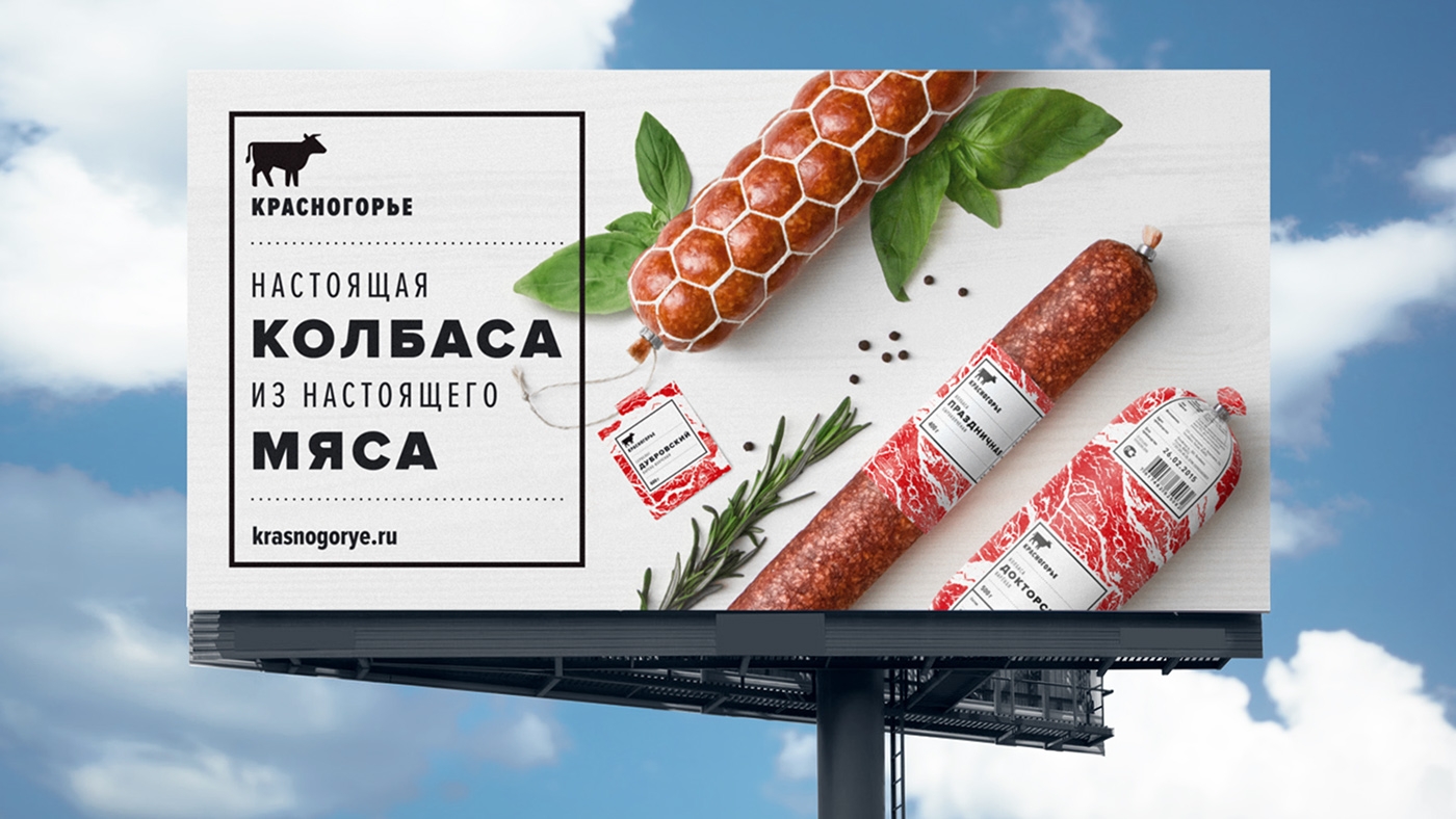 我們成功地提出了一個簡單而誠實的品牌定位概念,通過深入研究生產過程的細節、配方和生產者的方法。Krasnogorie用真正的烏拉爾肉制作香腸。考慮到這一點,我們開始尋找包裝設計的新想法。
