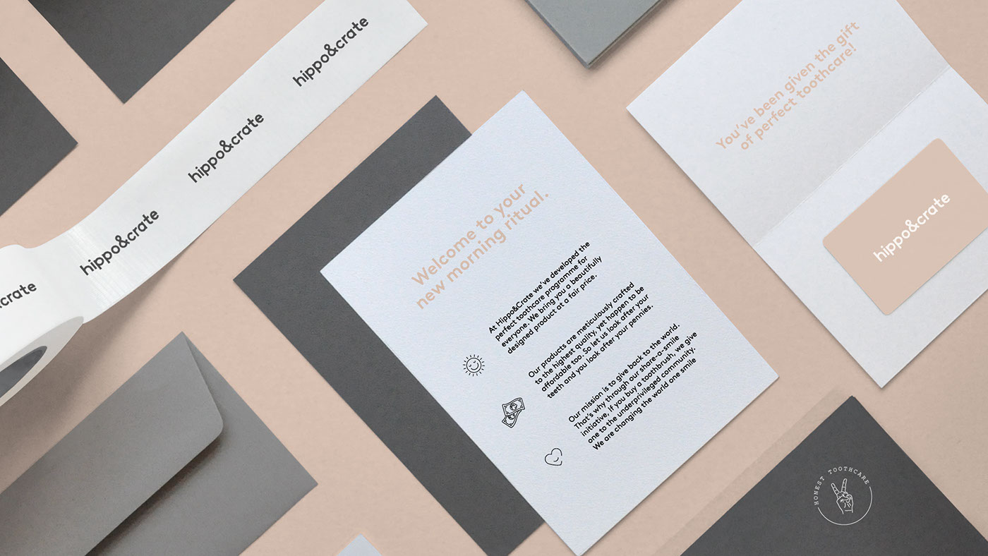 Hippo&Crate品牌是一個誠信實惠的牙齒護理品牌,與貨架購物相比,我們幫助其創建了一個性個化的購物方式,送貨上門,也正因為如此,它有一個結實規整的包裝。
