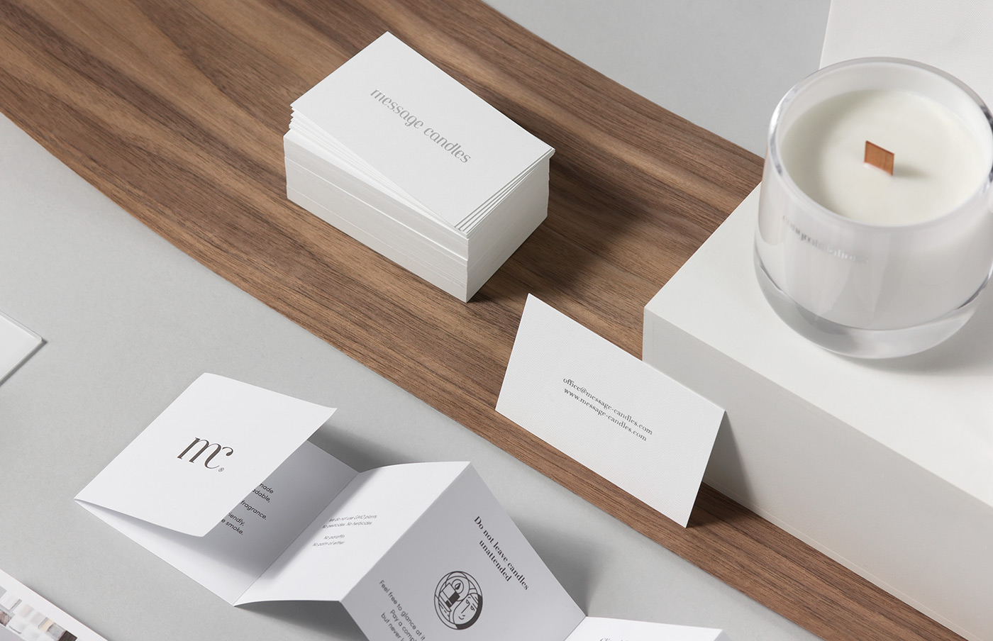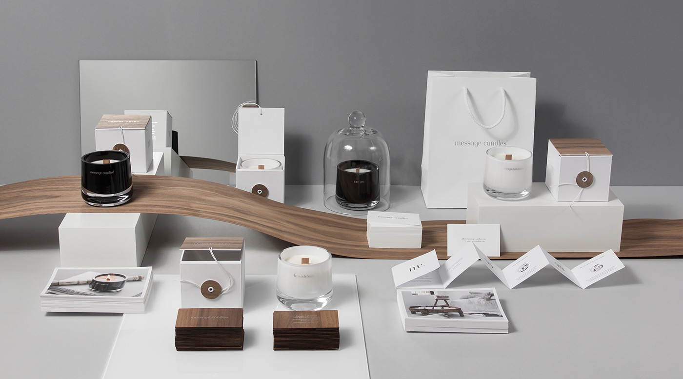 正如品牌名的意義“傳遞信息的蠟燭”,標志定制的字體傳達著優雅浪漫的情調。使用玻璃材料,符合了簡單優雅的產品風格。 產品包裝的靈感來源于木芯,天然的紋理與純白色的搭配,給人一種唯美純凈、古色古香的意境。我們嘗試很多不同厚度的特殊薄木片,最終達到完美的效果。