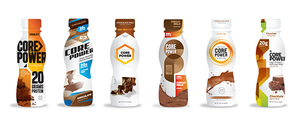 與其他運動恢復飲料不同,Core Power系列中的蛋白質直接從牛奶中過濾,保持液體形式,并且不會變成粉末,所以味道很好。此外,核心力量的成分列表比其競爭對手更加自然。鑒于這些關鍵要點,團隊希望確保整體包裝的吸引力和蛋白質的優勢。品牌標志喚起了能源和加油核心。強大的超大排版功能傳達了消費者對營養益處的新需求,并清楚地突出了蛋白質含量。以風味為重點的圖形是消費者捕獲了天然成分和味道。