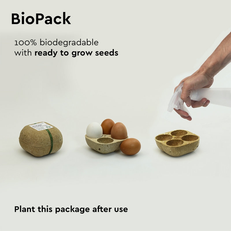 回收是一個多步驟的過程,涉及運輸,分類,加工和將材料制成新產品。很難評估其整體能源使用情況。經濟并沒有完全從其所有的回收工作中得到更高的回報 - 因為處理我們所有剩余的垃圾變得比以往任何時候都要昂貴。Biopack是一個設計在各個層面都是生態的雞蛋包裝。由澄清的紙漿,面粉和淀粉以及生物種子組成。使用完雞蛋后,用戶將其澆水或種植,而不是回收或扔掉它,使種子長成綠色植物。包裝設計的主要的想法和目標是創造一個真正環保的產品。