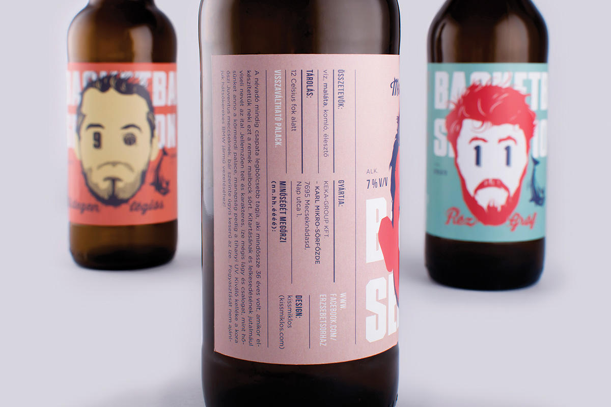 阿萊豪斯的老板們喜歡為他們最喜歡的籃球運動員或是在球隊打球的運動員制作一些啤酒標簽,用作產品包裝。這款啤酒共有三種類型,每種產品所含有的酒精濃度都不同,產品包裝采用人物插畫的風格進行設計,每個人物的肖像都包含了球衣的號碼。包裝色彩鮮艷靚麗、青春活力。瓶形的設計也是這次包裝設計的一大亮點 。