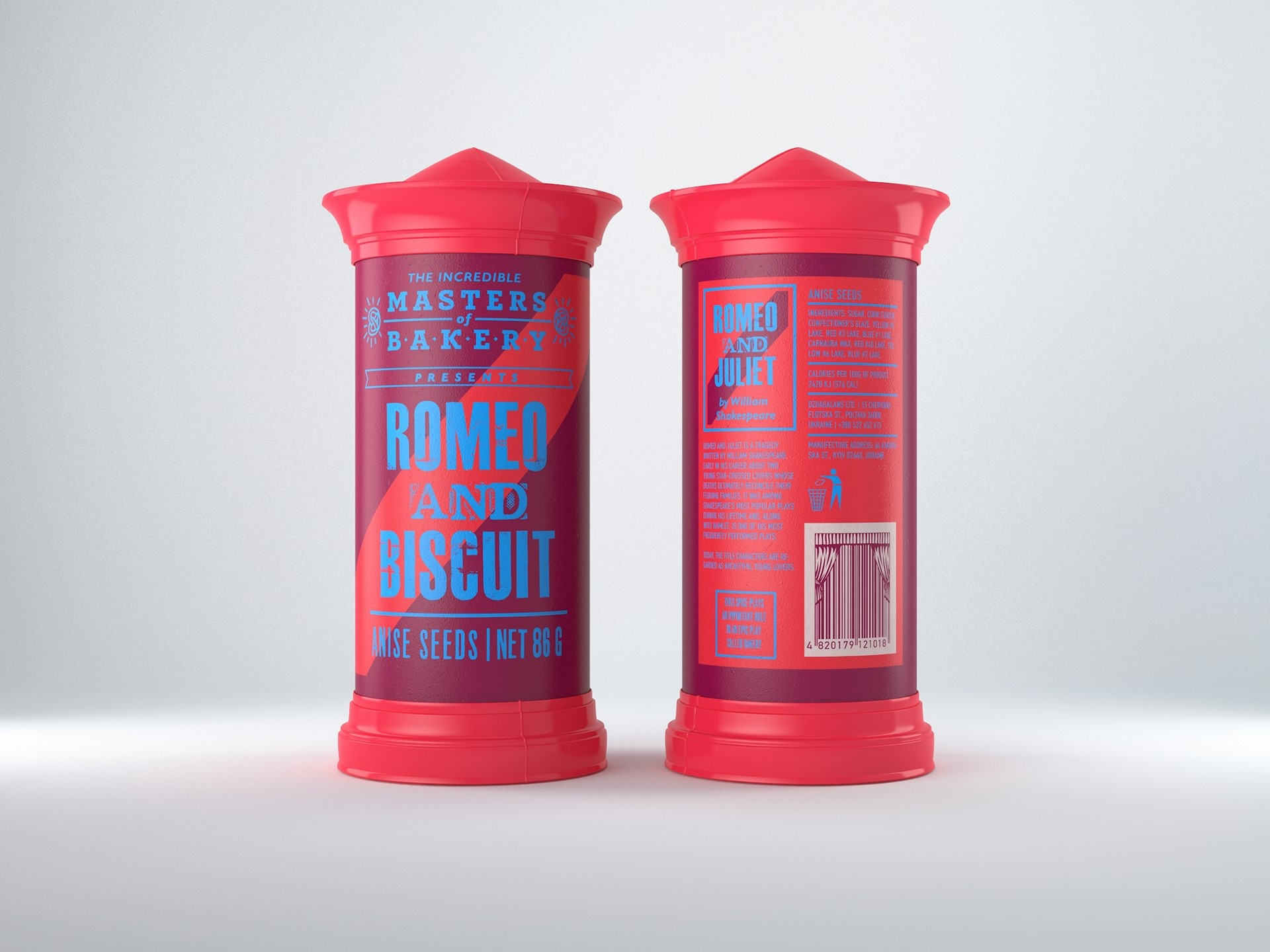 然后,這些香料容器有一些標簽,這些標簽設計是通過雙關語來引用的。因為香料和糕點的配料主要是用來烘烤的,所以很多人的名字都是用經典的游戲名稱來做雙關語的。例如,茴香種子的包裝被標記為“羅密歐與餅干”,參考莎士比亞的主要作品,并且參考塞繆爾·貝克特(Samuel Beckett)的荒唐主義者“等待戈多特”,將灑水包稱為“等待蛋糕”。