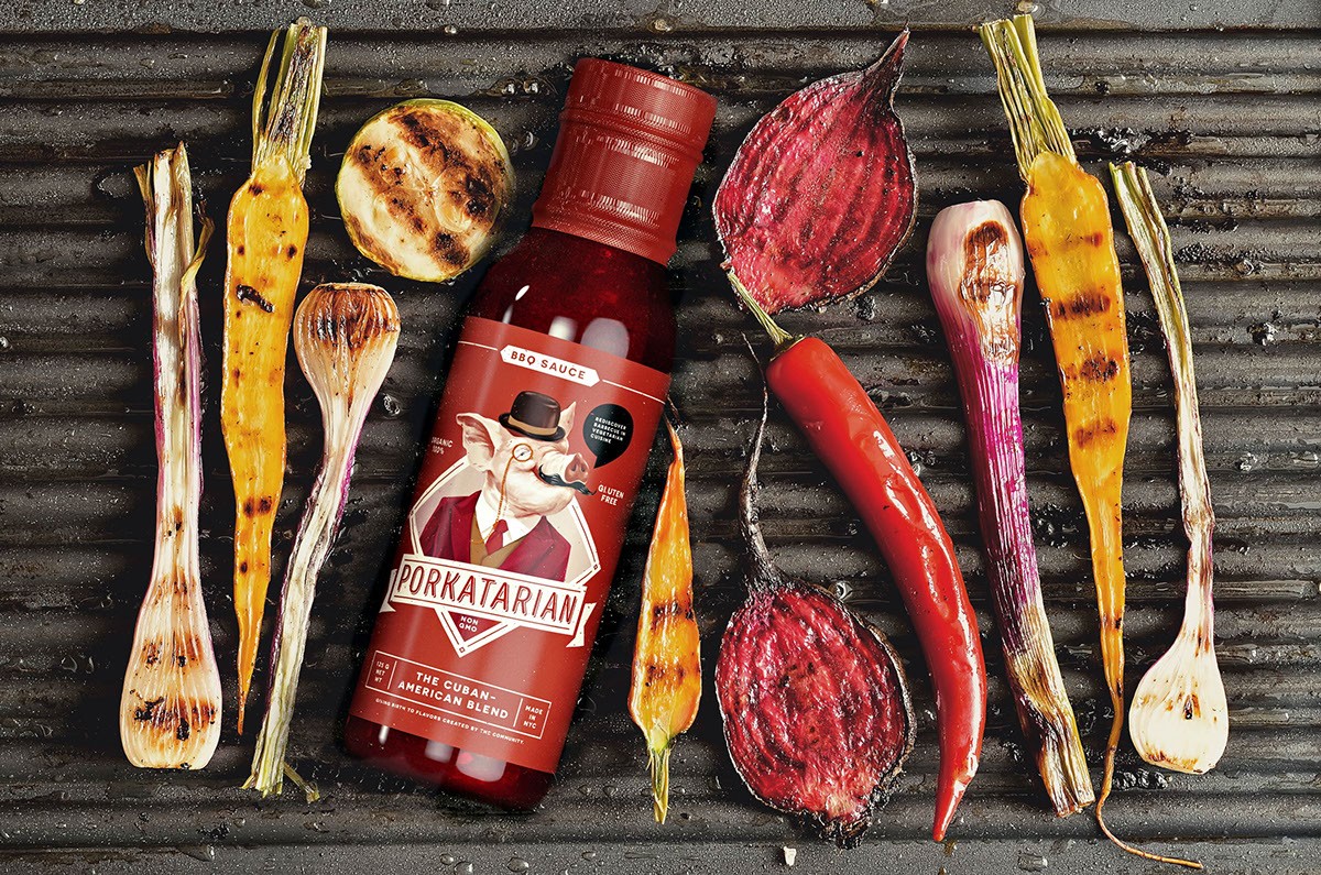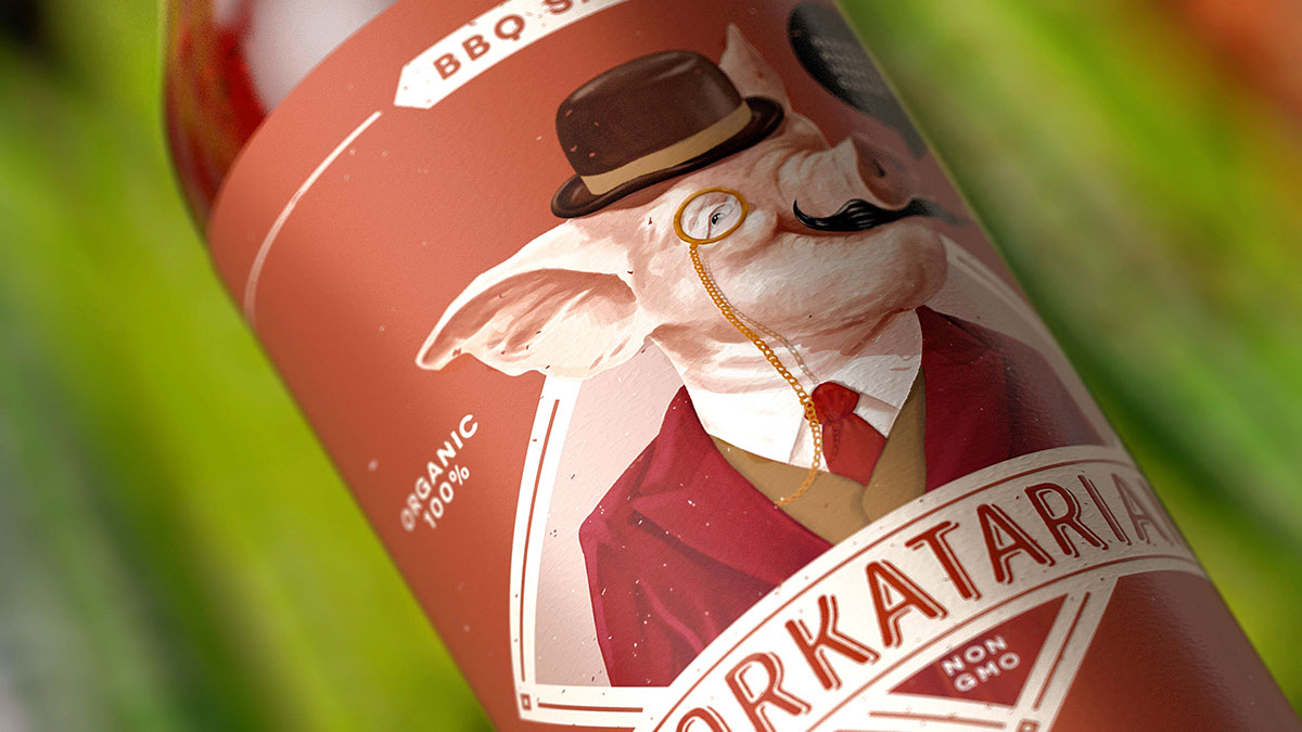 豬肉味素食燒烤醬插畫包裝設計——!肉制品香腸包裝設計