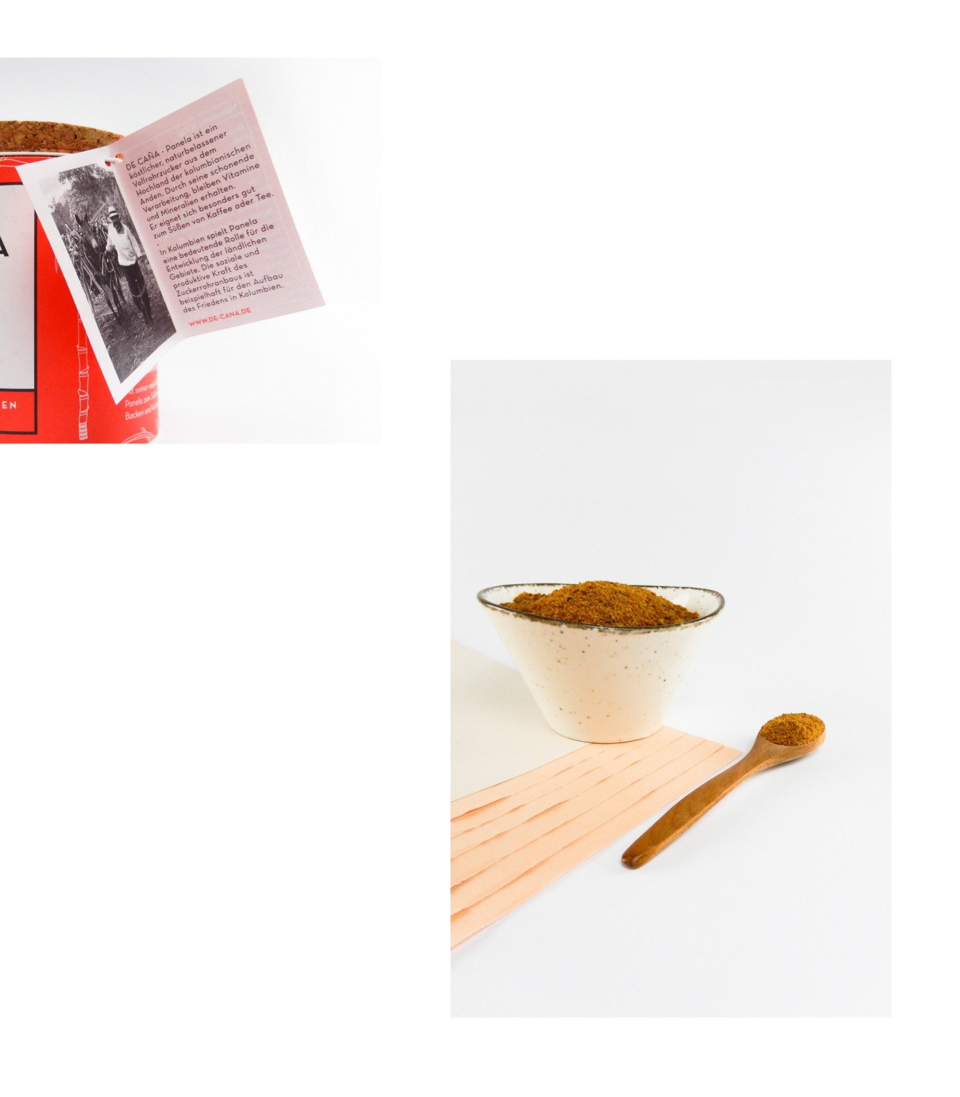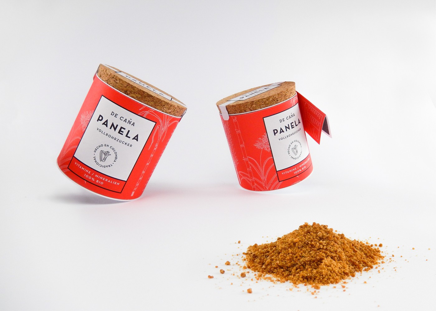 哥倫比亞安第斯山脈高地的甘蔗紅砂糖是100%的有機糖,其獨特的焦糖味道,優質的谷物質地,美麗的金色色澤,豐富的維生素和礦物質,都保留在最終的產品中。產品包裝設計結合了哥倫比亞傳統古色古香的建筑特色和溫暖的色彩,并提供甘蔗植物的手工插圖。木蓋反映了品牌自然、健康無添加的高品質。標志部分也運用了甘蔗插畫,增強了行業屬性。半透明的插畫包裝袋營造了朦朧的美感。