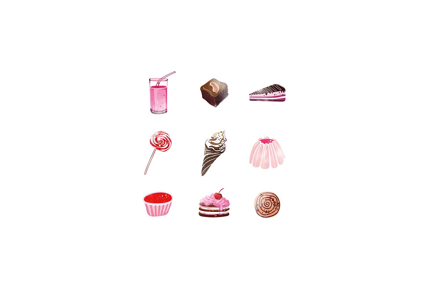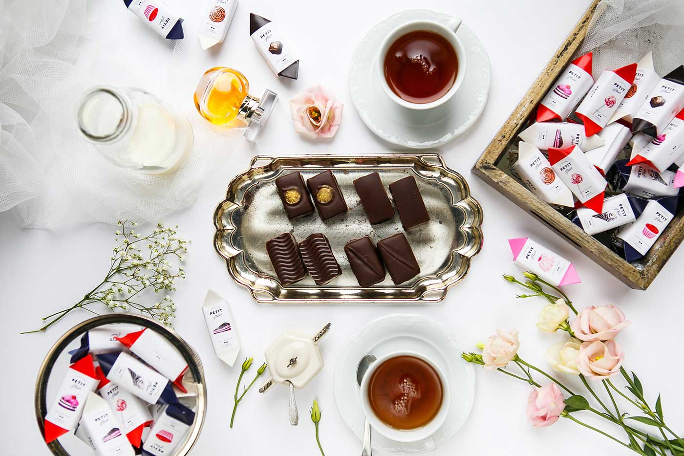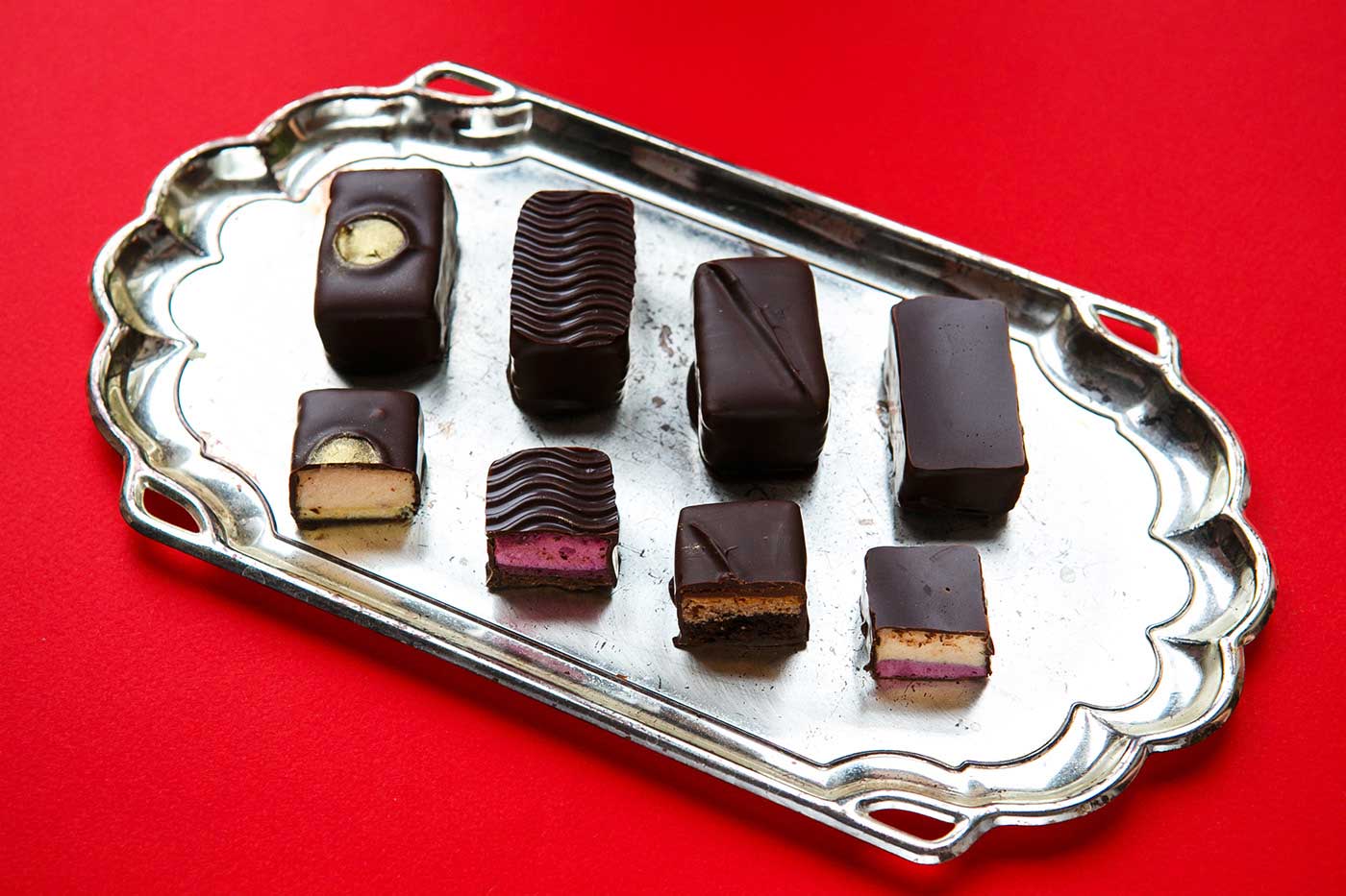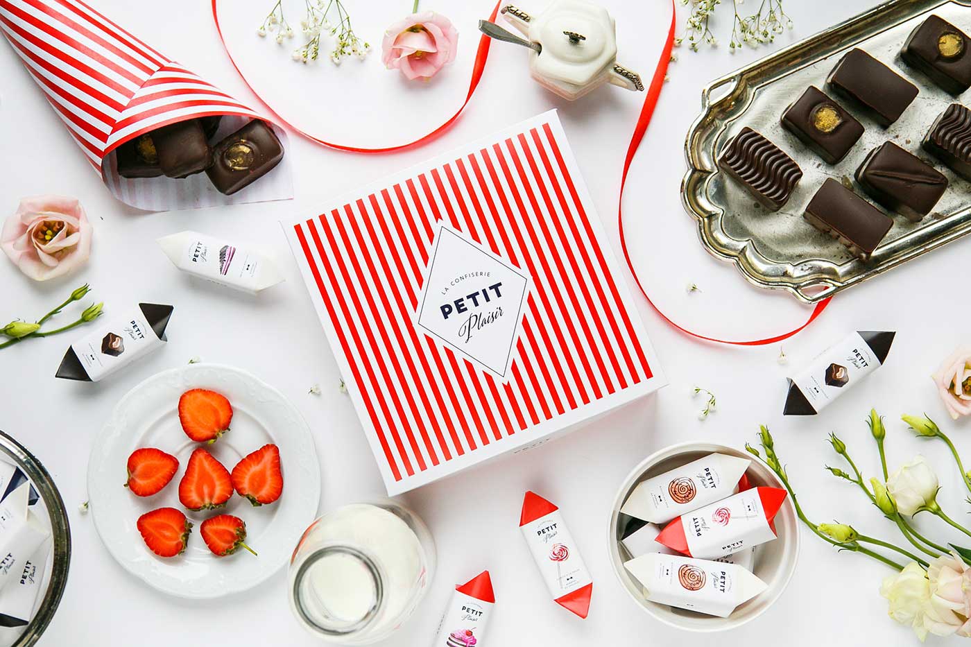市場上的巧克力品牌數量越來越多,就連較為獨特的手工巧克力也變得不再特別,能否成為特別中的特別將決定一個品牌的命運。Petit Plaisir品牌想要突出,就必須從巧克力的口味到產品的視覺包裝設計都做足功夫。所以,他們創造了一系列的巧克力,包括九種不同口味,每一種口味都設計特定的產品包裝,以表達不同的口味。巧克力底部是天然的果凍,上面是法國漿果棉花糖(guimauve)和大理石紋的蛋糕(gateau),黑巧克力覆蓋外部所有區域。