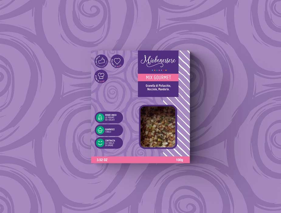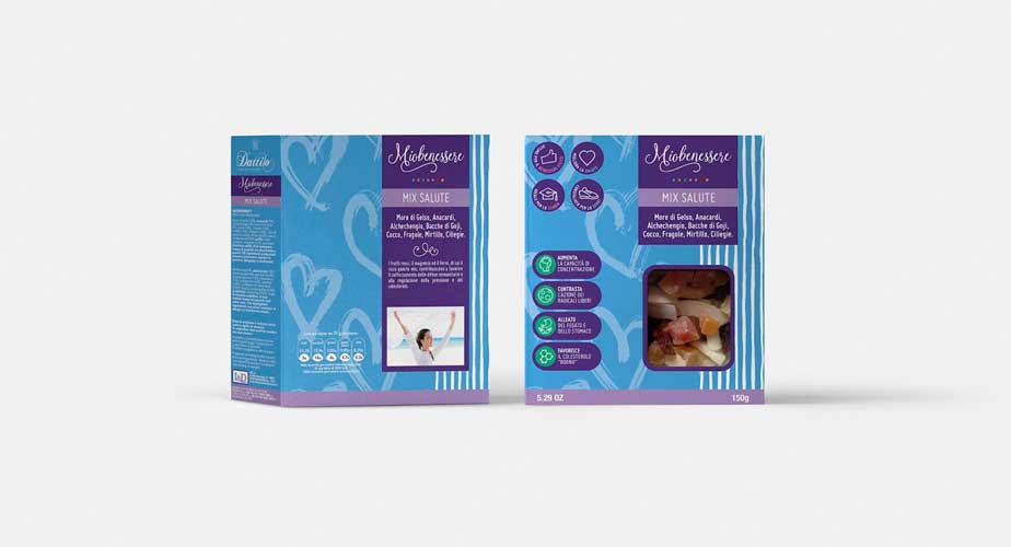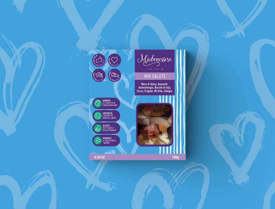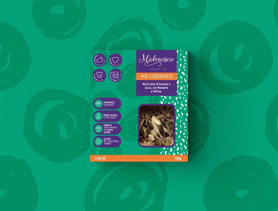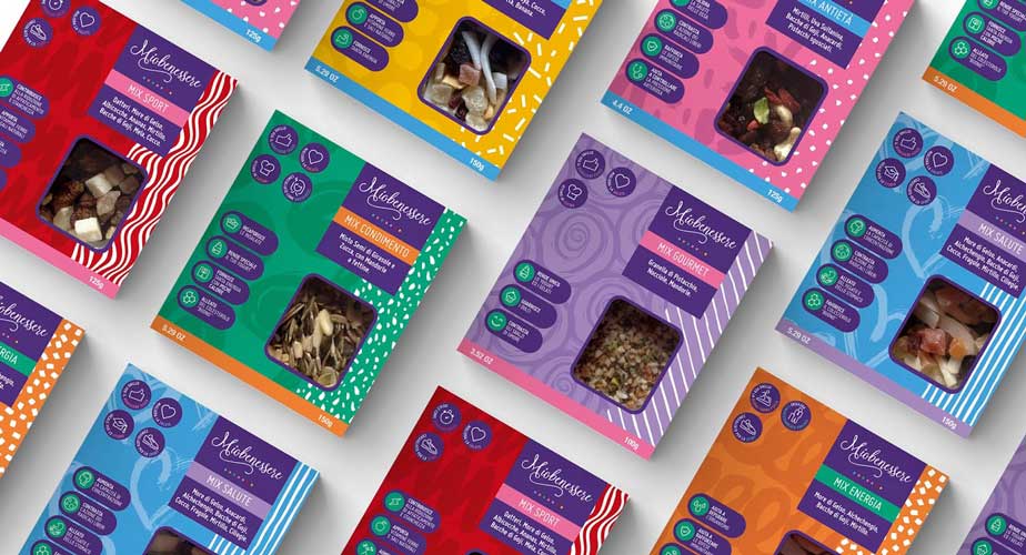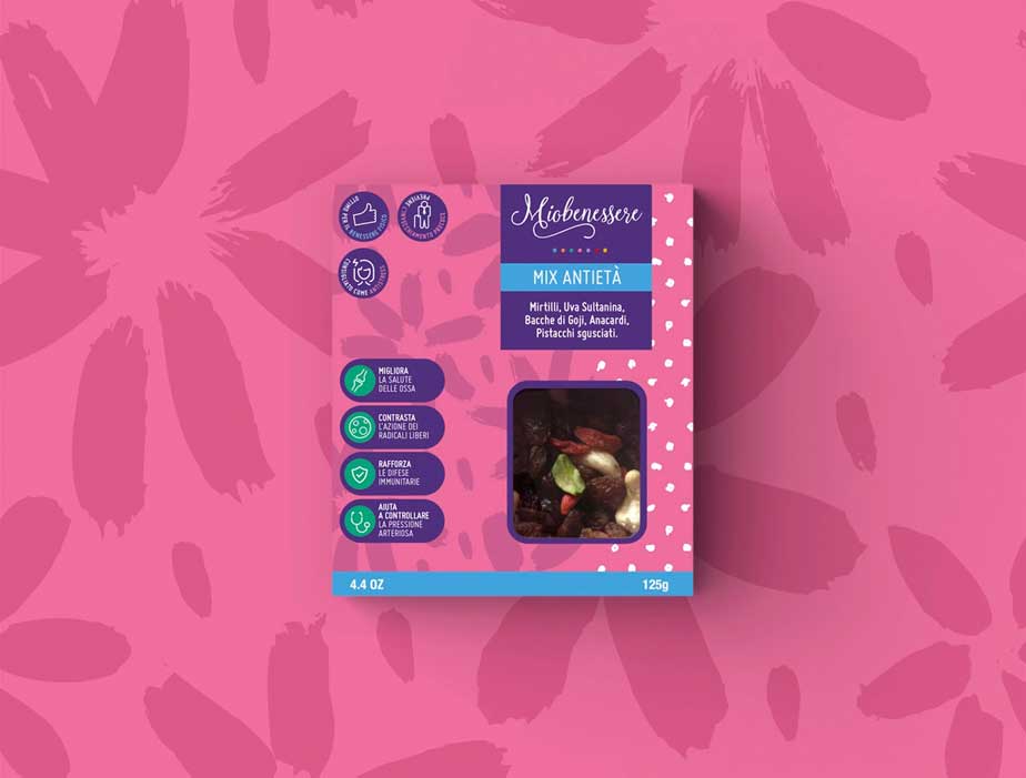 “Miobenessere”是一個干果品牌,因為保質期時間短,所以更新新產品的速度很快。干果的產品包裝在設計上采用特定顏色和紋理,通過不同顏色的和紋理包裝設計來體現不同的口味,并且每個干果包裝上用一組圖標簡要說明每個產品的有益性質及每種混合料的特征,一目了然,每款包裝上都設計了一個小窗口,以方便消費者的直觀的看到里面的產品。在現代消費市場中競爭日益激烈,我們需要增強產品包裝的色彩和圖案生動活潑,已達到產品包裝的差異化,而關心食品的健康和營養成為現在的一個設計點。“Miobenessere”以幫助人們實現和保持健康平衡的生活方式為設計出發點,自然脫穎而出。