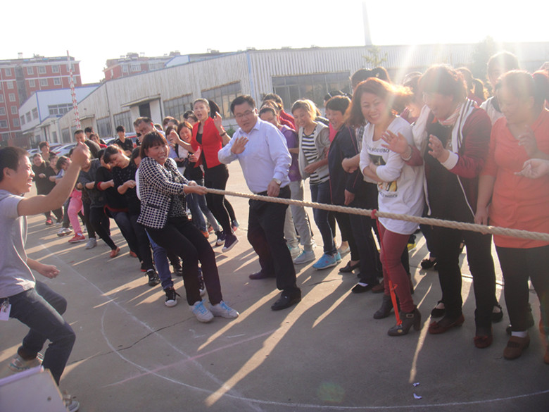 2014年10月22日,公司組織舉辦了2015趣味運動會,這是我司成立以來第二次舉辦該類活動,活動設置了拔河、集體跳繩、滾雪球、協力競走、綜合接力五個項目。按工序分組參加比賽,廣大員工積極參加,累計251人次參加活動,占全員比例的78%。根據比賽規則決出冠、亞、季軍共105人次,占全員比例的33%。趣味運動會圖片如下: