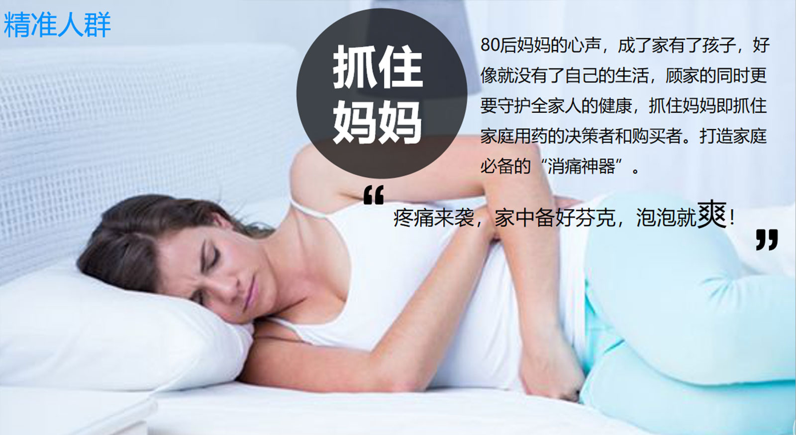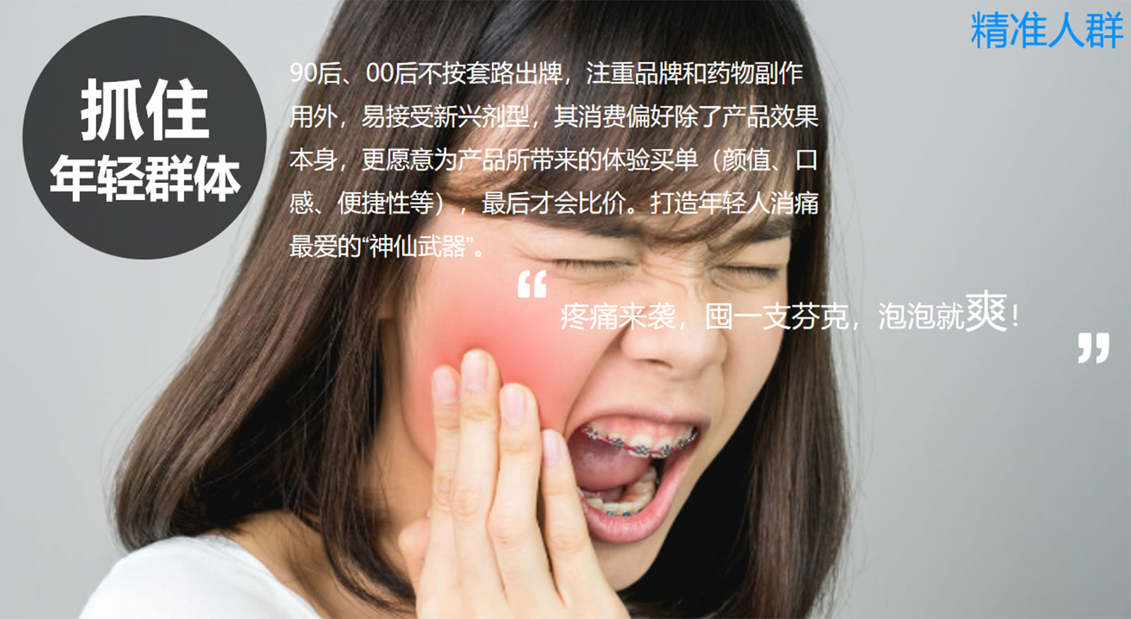 ⑥畫面右側的標尺從藍色漸變到紅色,配合視覺中心人體剪影的色彩,強調泡騰片緩解疼痛時間段、速度快的特點。