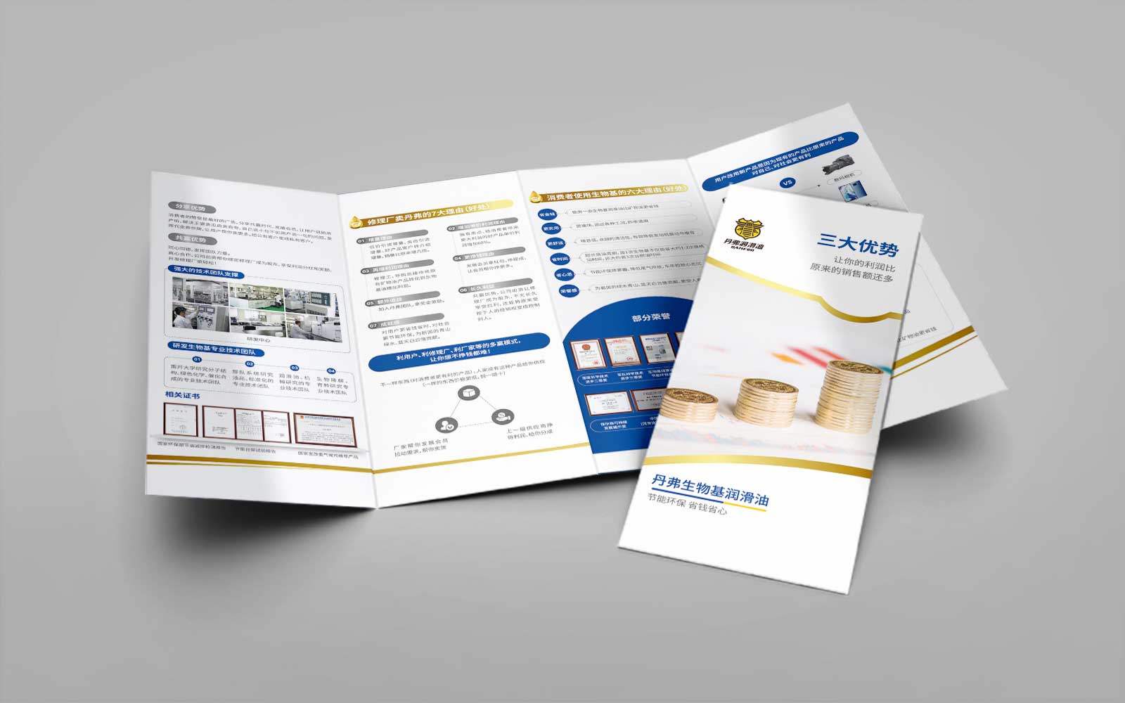 丹弗中綠系列產品折頁原來由其公司內部自己設計,效果不是很好,在我公司建議下重新定制了方案,設計作品得到了較高認可,這是石特公司非常高興的事,能為客戶帶來價值是我們的追求!