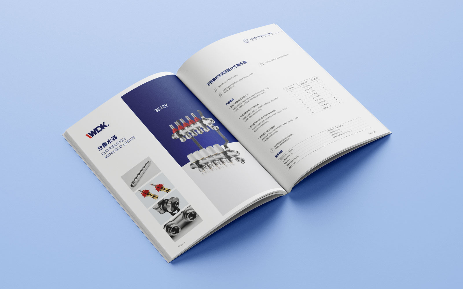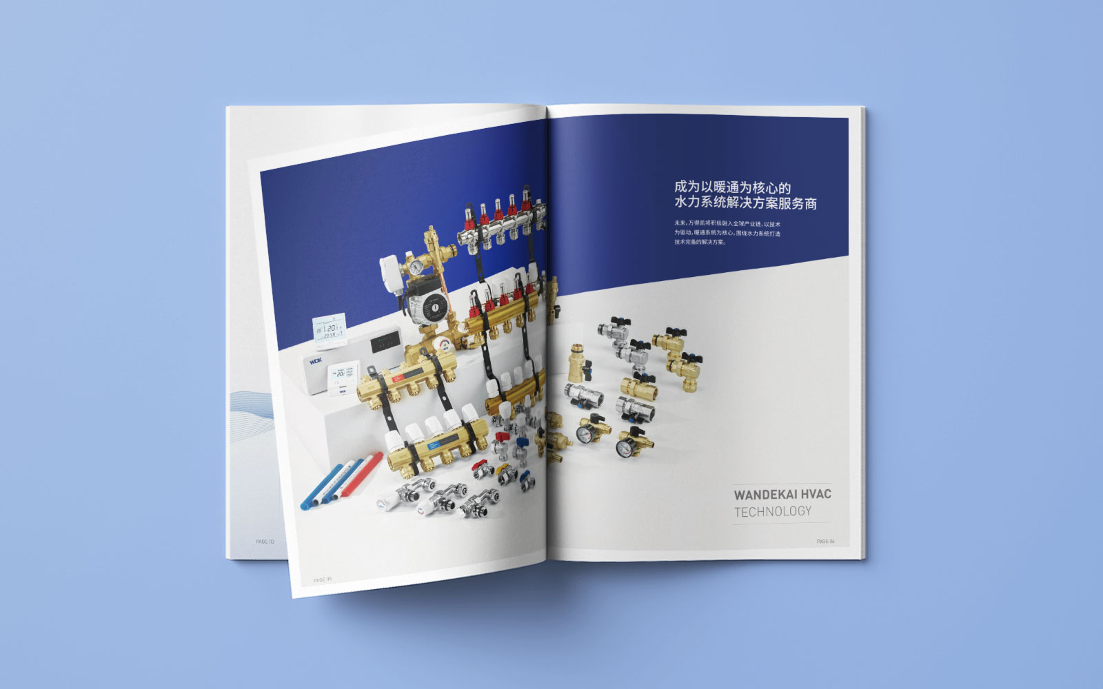萬得凱是一家水利系統解決方案服務商,委托石特設計宣傳冊,在了解企業需求以及宣傳冊使用方向后,石特決定采用簡潔明了的設計風格設計宣傳冊。