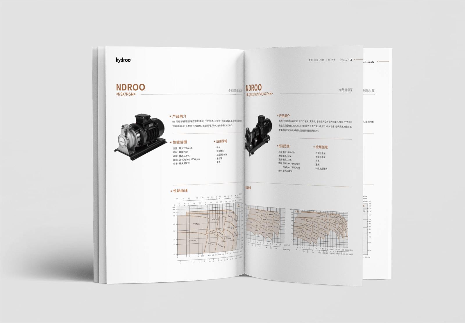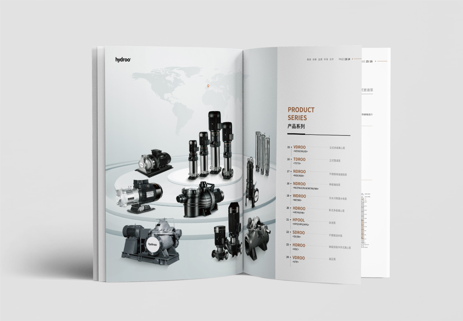 在溝通中,我們了解到浩卓總部位于西班牙巴塞羅那,運營分部設在中國杭州,為更好的展示浩卓企業綜合實力,在畫冊的設計上,以圖文結合的形式先對企業的基本情況進行介紹,之后以表格、數據,細節圖對各類產品進行闡述,便于受眾快速了解產品參數及規格,最后展示浩卓泵業的經典案例,凸顯企業突出的業績。另外,對畫冊的封面做了創意設計,其主畫面是一個地球,分為上下兩個部分,上部分以線稿的流程圖表現出的一站式解決方案;下部分則是半個地球,體現企業致力為全球提供各類高端泵產品和泵解決方案。
