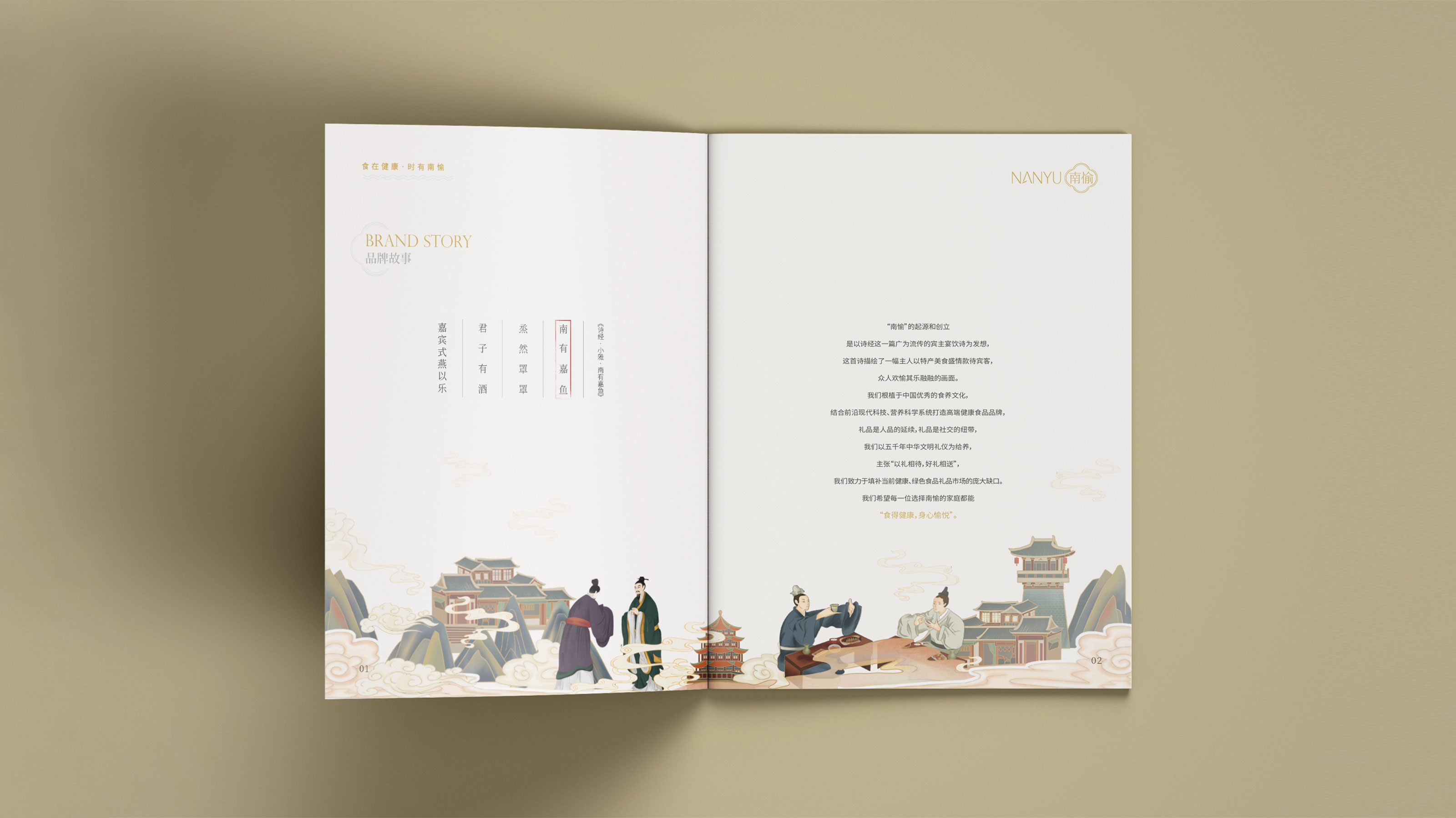 南愉根植于中國優秀的食養文化,結合前沿現代科技、營養科學系統打造高端健康食品品牌,并以五千年中華文明禮儀為給養,主張“以禮相待,好禮相送”,致力于填補當前健康、綠色食品禮品市場的龐大缺口,希望每一位選擇南愉的家庭都能“食得健康,身心愉悅”。南愉需要一款能夠全面、立體展現品牌形象的宣傳畫冊,從而拉近與用戶群體的距離感,更好展現品牌調性。